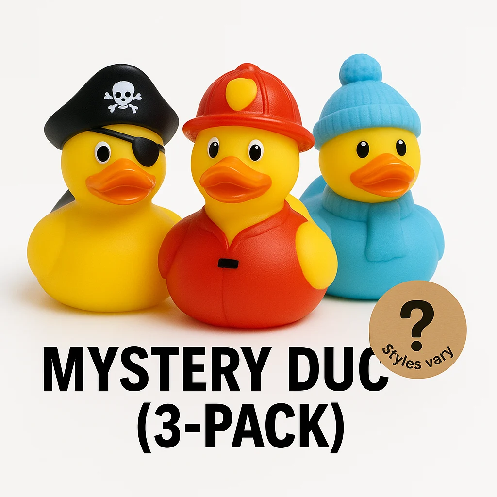 The perfect little flock for spontaneous smiles. Our Mystery Duck (3-Pack) delivers a curated trio of uniquely themed ducks—think firefighters, pirates, winter cozies, space explorers, and more. You won’t choose the styles; that’s the fun. Pop them in your glove box, desk drawer, party favors, or gift bags and let the quack-tivity begin.