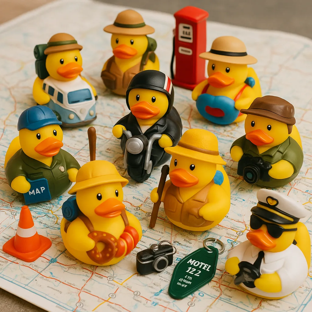 The open road needs more quacks. The Road Trip Pack delivers 10 assorted, travel-inspired ducks—think navigators with maps, shutterbug tourists, hikers, road-crew helpers, cruisers with shades, and more. You won’t choose the styles (that’s the fun), but every pack is curated for maximum variety, perfect for ducking along your route or stocking the glove box for spontaneous stops.